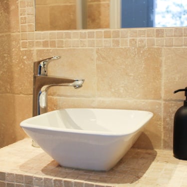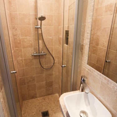 La salle de bain aux volumes optimisées a été pensée et dessinée en collaboration avec le client.