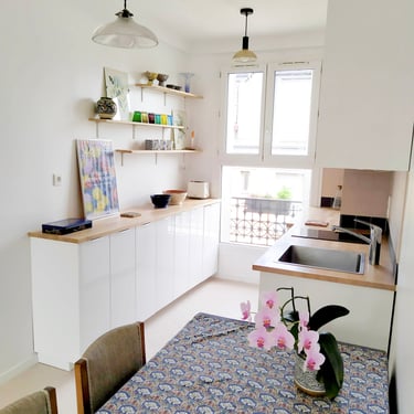 Cet appartement situé dans une ruelle fleurie du 18ème arrondissement a retrouvé chaleur et fonctionnalité après une rénovation complète.